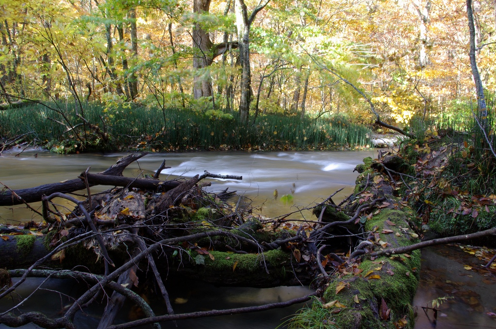 シャッタースピードを大きくすると川の流れが柔らかく写るんですな。